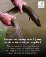 Des mesures inacceptables, injustes et qui ne sauveront pas l’espèce !Projet de décret portant moratoire sur la pêche de loisir en eau douce de l’anguille d’Europe